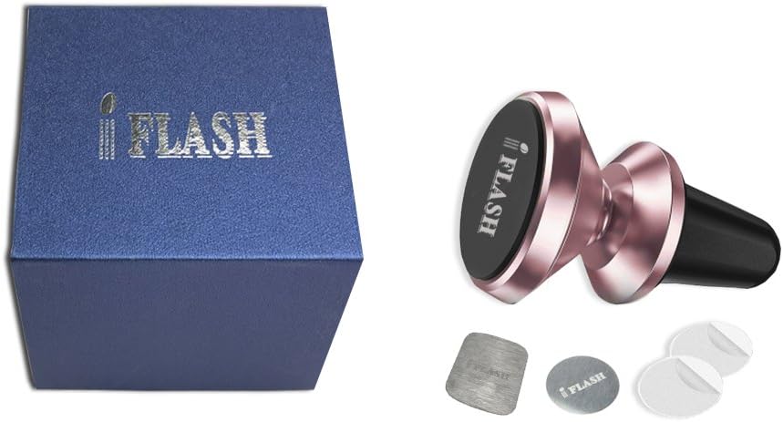 Magnetic Mount, iFlash Aluminum Universal Air Vent Magnetic Car Mount Phone Holder, 360 Degree Rotation for Multi-Angle View, Cradle-Less Car Phone Mount Stand, for Apple iPhone/Galaxy (Rose Gold)