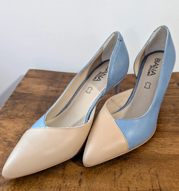 Blue and Cream Close Toe Heels - SIZE EU 41/US 9.5