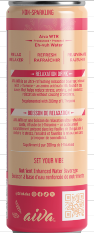 Aiva WTR is an ultra-refreshing relaxation beverage, infused with L-Theanine, that provides a non-drowsy, calming effect. We use all-natural ingredients that are carefully chosen for their relaxing properties ensureing you experience the perfect balance of calmness and alertness without sacrificing productivity