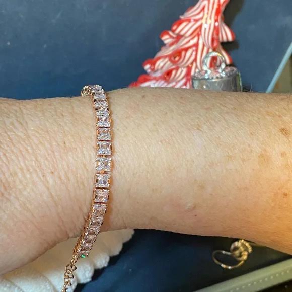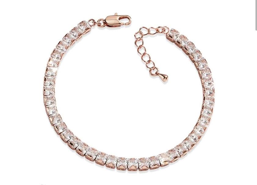 Park Lane Sleigh Bracelet. Tennis bracelet set in a high polished rose gold finish and adorned with radiant cut clear czs. Sleigh bracelet gives off that classy, real diamond look. 7”+1”
