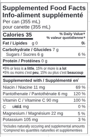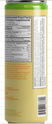 Filtered water, Sugars (cane sugar, monk fruit juice concentrate), |